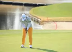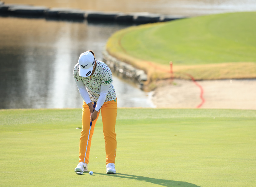 西郷真央のパッティングストローク(正面)|インパクト