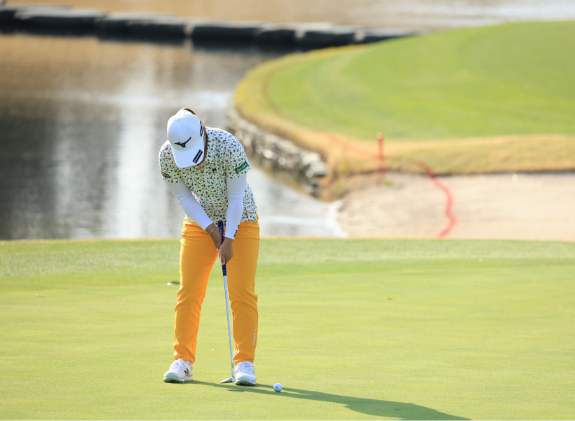 西郷真央のパッティングストローク(正面)|アドレス