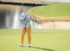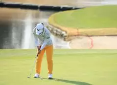 西郷真央のパッティングストローク(正面)|フォロー①