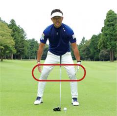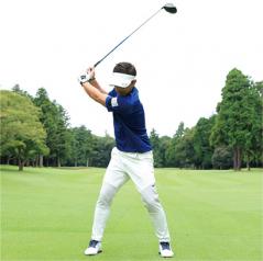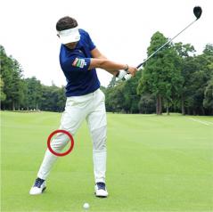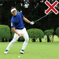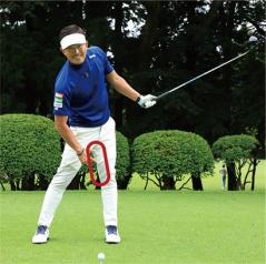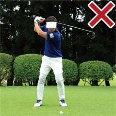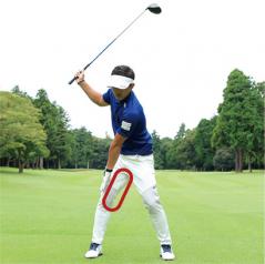 逆に下半身がまったく動かず、手だけでクラブを上げてしまうパターンもいけません。クラブはトップの位置まで上がっていても、カラダが回っていないとパワーが溜まらないからです。バックスイングでカラダを正しく回すには下半身が動きすぎても、全然動かないのもよくないのです。