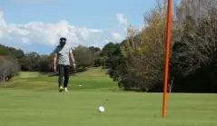 また、フックかスライスかによって打ち出す方向が変わるのでそれも確認してください。ライン読みがわからなければキャディさんや競技でなければ同伴者に聞いください。わからないラインを確認しているうちに経験が蓄積され、ライン読みの精度が上がってきます。