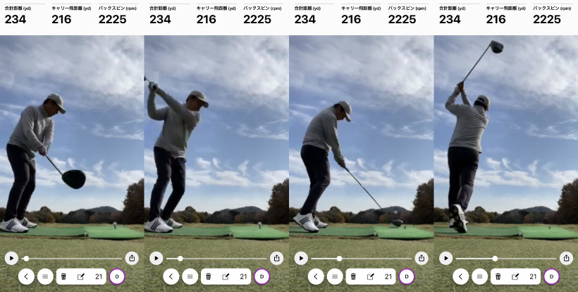 逆に悪い球が出たときも、どこに原因があるのかってことも検証できます。僕もスイング動画を撮りましたが、この時は地面にスマホを置いて撮影しちゃたのでアングルが悪いです。すみません。
