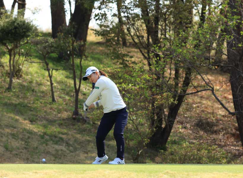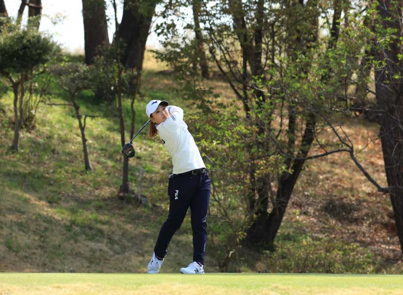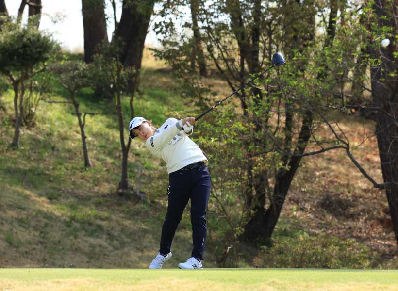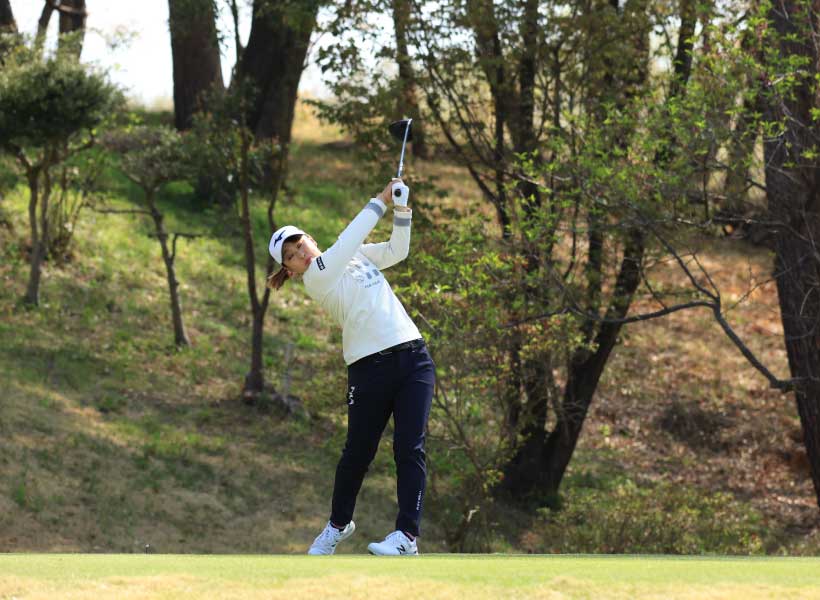 西郷真央のドライバースイング(斜め前方)|インパクト
