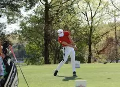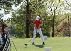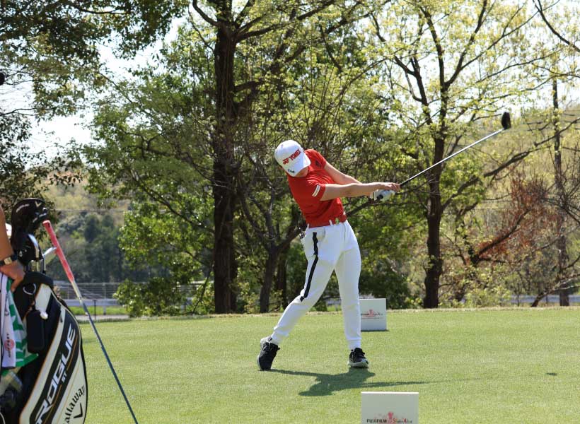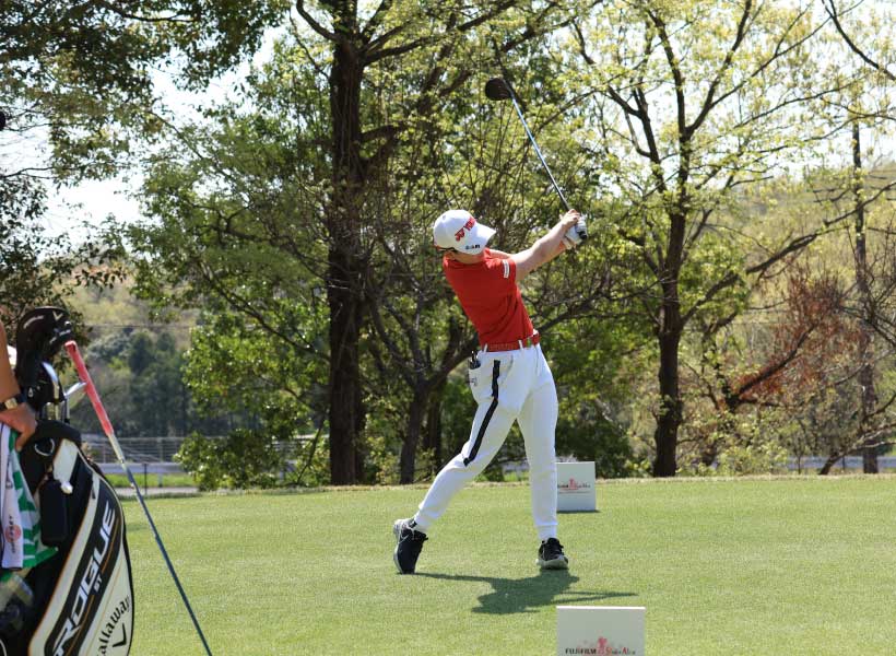 岩井千怜のドライバースイング(正面)|フォロー①