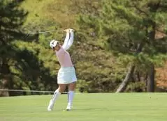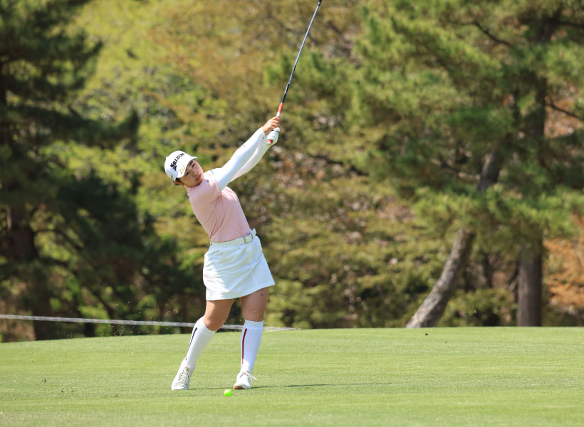 山下美夢有のユーティリティスイング(斜め前方)|フォロー①
