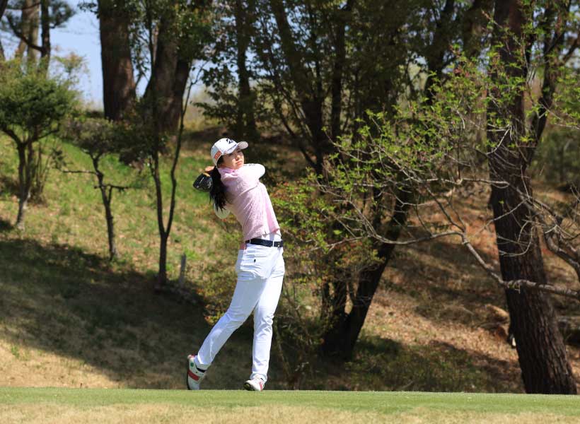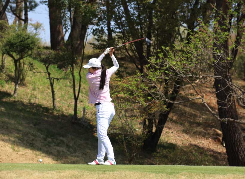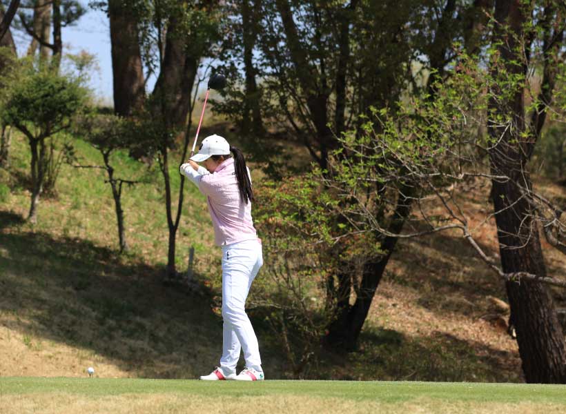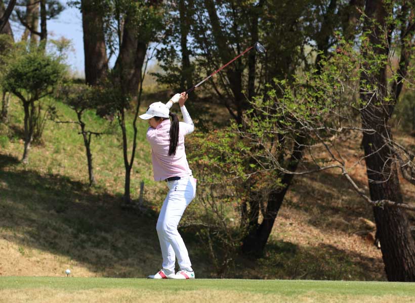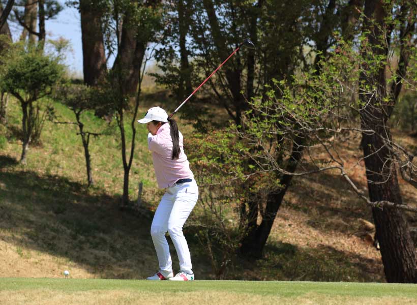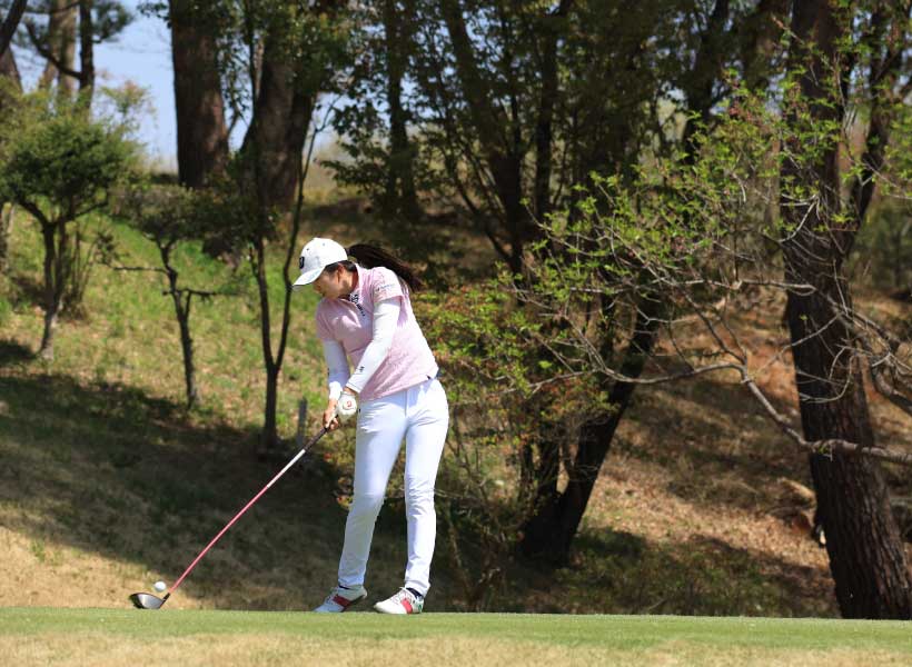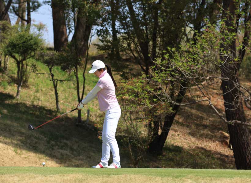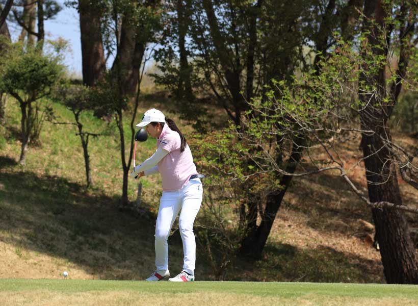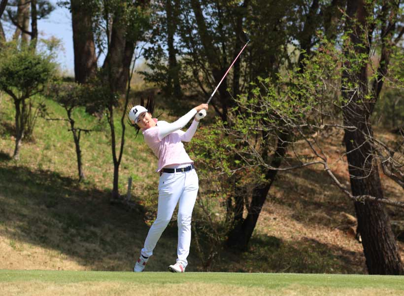 堀琴音のドライバースイング(斜め前方)|フォロー①
