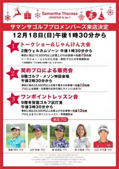 当日はトークショー&じゃんけん大会、契約プロによる販売会、ワンポイントレッスンなどのイベントが開催され、サマンサゴルフプロメンバーズとの楽しい時間を過ごすことができる。