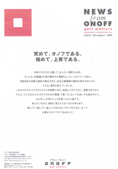 上質なゴルフライフというオノフのブランド・コンセプトを説明したリリーズ。