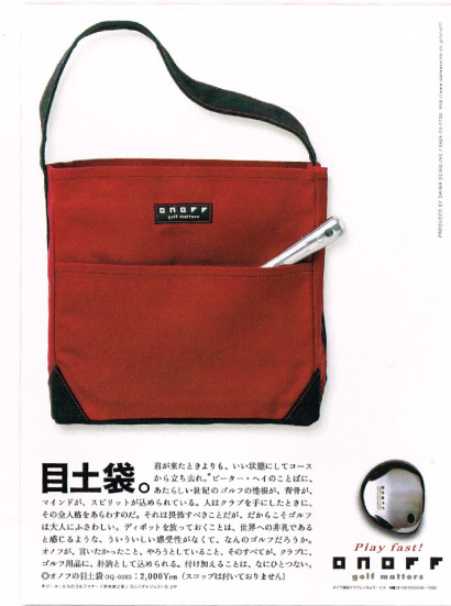 オノフの広告には今まで通常使われている「飛ぶ」「曲がらない」といったキャッチコピーは使っていなかった。それを象徴するのが、目土袋を前面に押し出したものであった。「オノフ」は初年度65億円を達成し、新しいブランド思想が評価された。