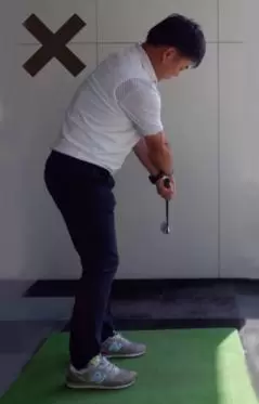 ←上半身先行になってボールを打ちに行ってませんか?正しい切り返し方とは