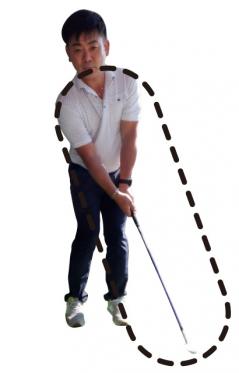 ヘッドを後ろに引くクセがあるので、できるだけプレーンをなぞって振るようにします。