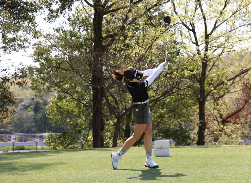 岸部桃子のドライバースイング(正面)|バックスイング①
