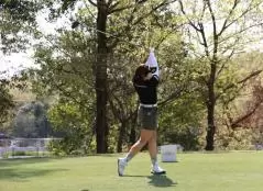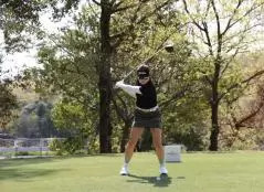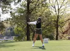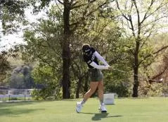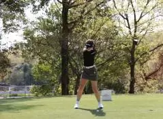 岸部桃子のドライバースイング(正面)|フォロー①