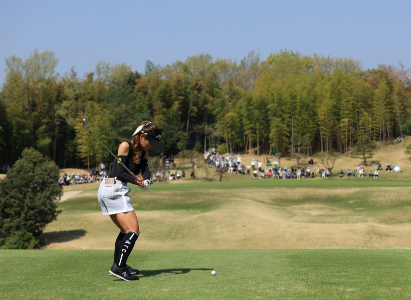 臼井麗香のアイアンスイング(後方)|ダウンスイング①