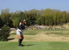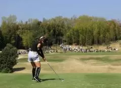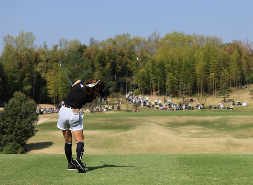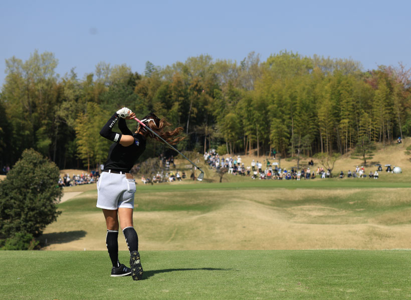 臼井麗香のアイアンスイング(後方)|インパクト
