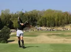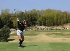 臼井麗香のアイアンスイング(後方)|フィニッシュ