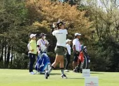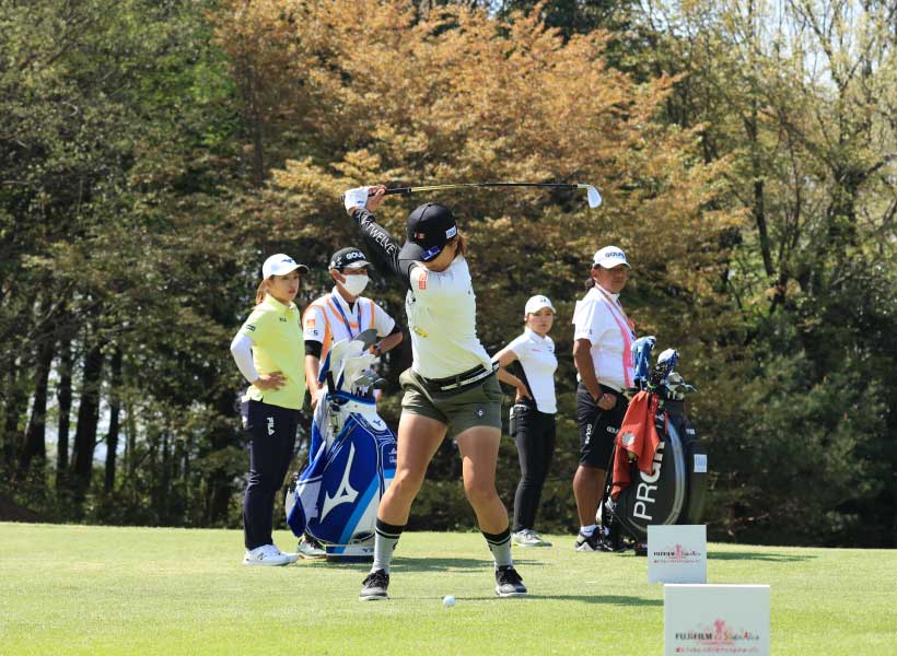 藤本麻子のアイアンスイング(正面)|バックスイング①