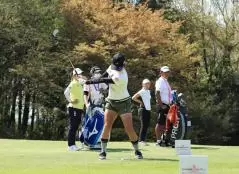 藤本麻子のアイアンスイング(正面)|バックスイング②