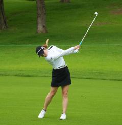 山路晶のアイアンスイング(斜め前方)|フォロー①