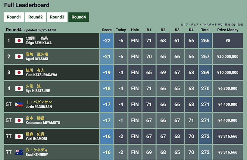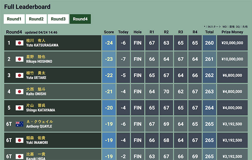 | 2位 | −24 | ISPS HANDA 欧州・日本、とりあえず今年は日本 | 桂川有人 |