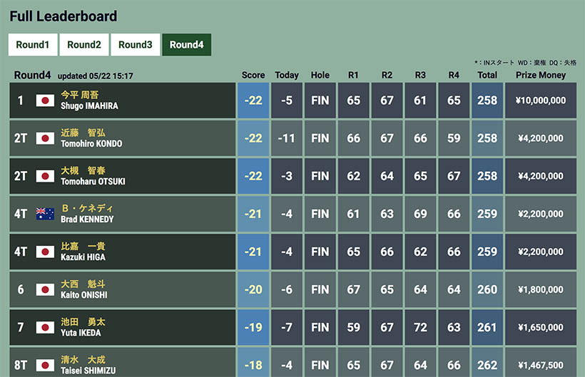 2022年男子ツアー優勝スコアトップ3
