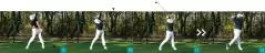 アドレスでは正面を向いていた左足のツマ先が、インパクト直前には少し内側を向いている。これは左足のカカトを踏み込むことでツマ先が内側を向いている。