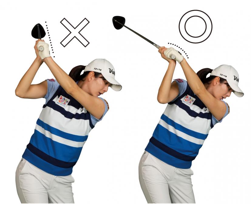 トップでは右手のヒラが真上を向けばOK!アマチュアは右手のヒラが斜め上を向く人が多い。