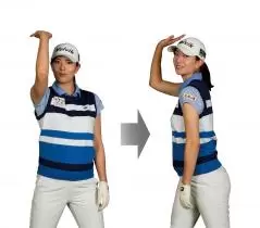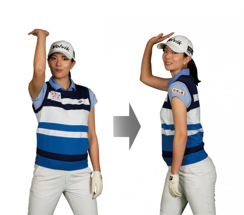 手元は真上に上げて、体がヨコ回転している