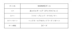 「WARBIRDボール」は2ピース構造で、ややしっかりとした心地良いフィーリングで高いボール初速を生み出す高エネルギーコアと、3つのアイオノマーを配合したトライブレンド・アイオノマー・カバーという組み合わせは、前作から継承。