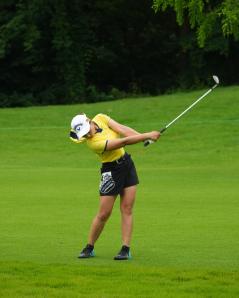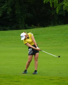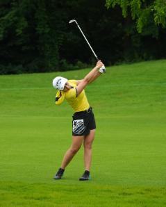 竹内美雪のウェッジスイング(正面)|フォロー②