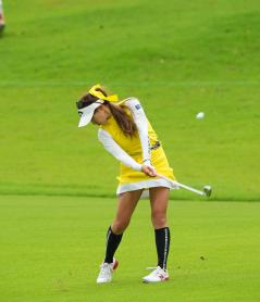 臼井麗香のアイアンスイング(斜め前方)|フォロー①