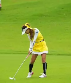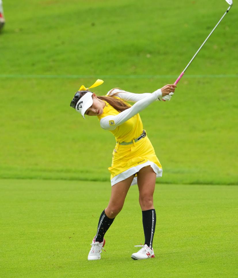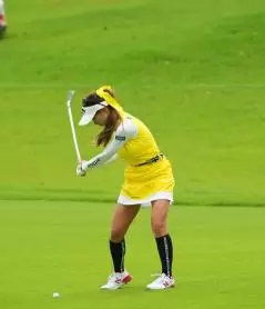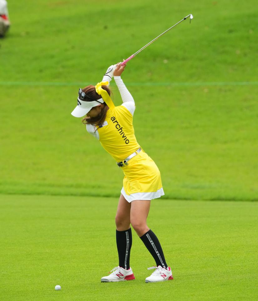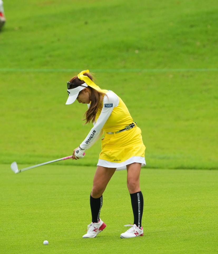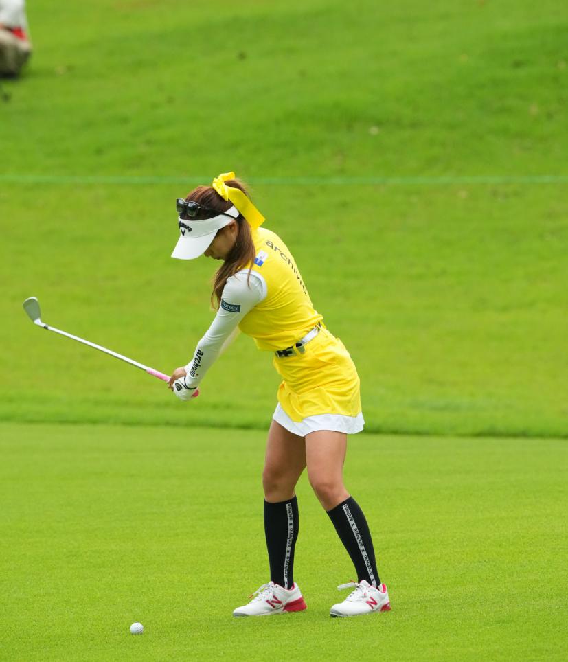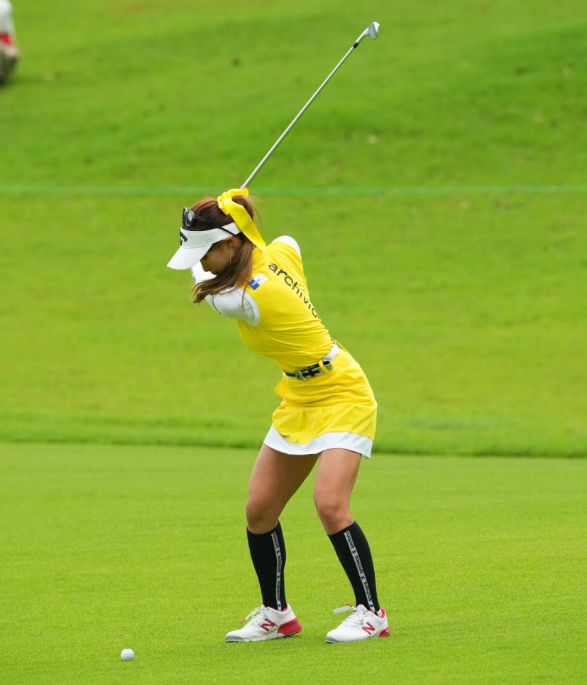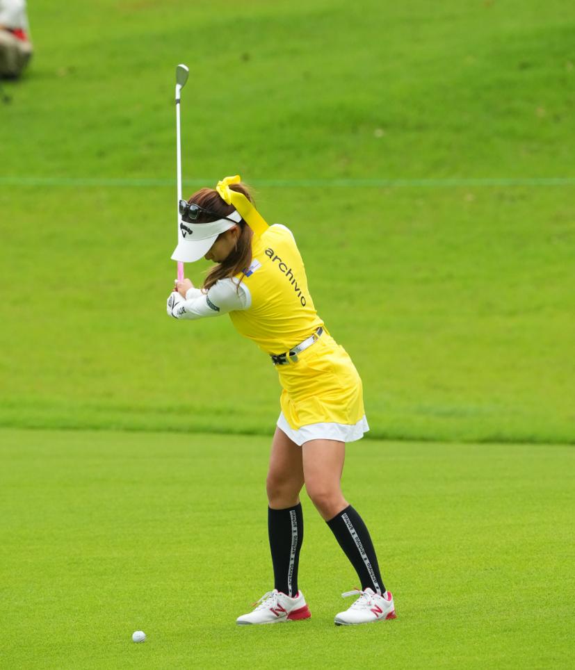 臼井麗香のアイアンスイング(斜め前方)|フォロー①