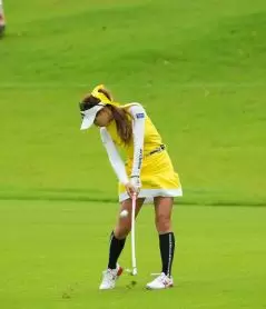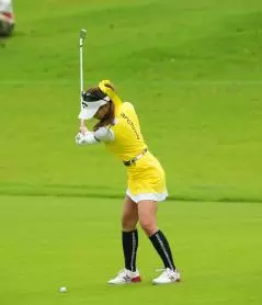 臼井麗香のアイアンスイング(斜め前方)|インパクト