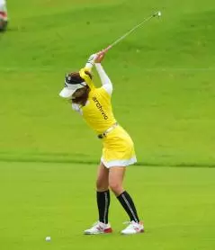 臼井麗香のアイアンスイング(斜め前方)|フォロー②