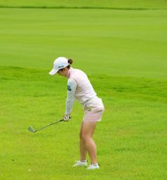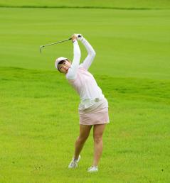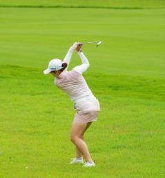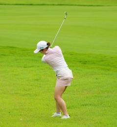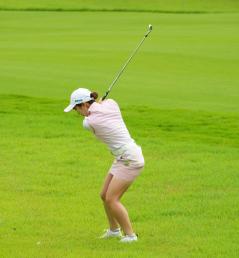 永嶋花音のアイアンスイング(斜め前方)|トップ