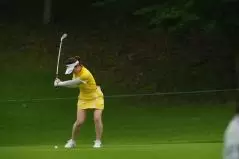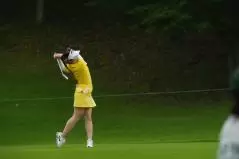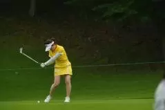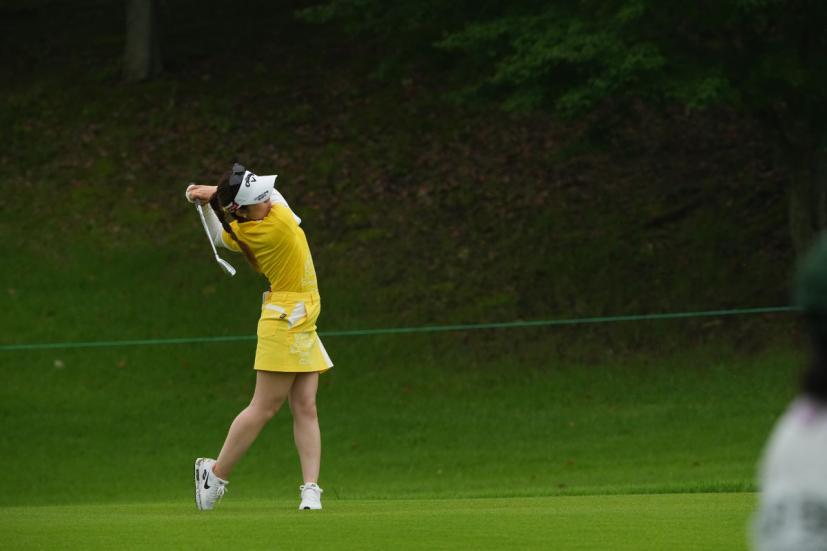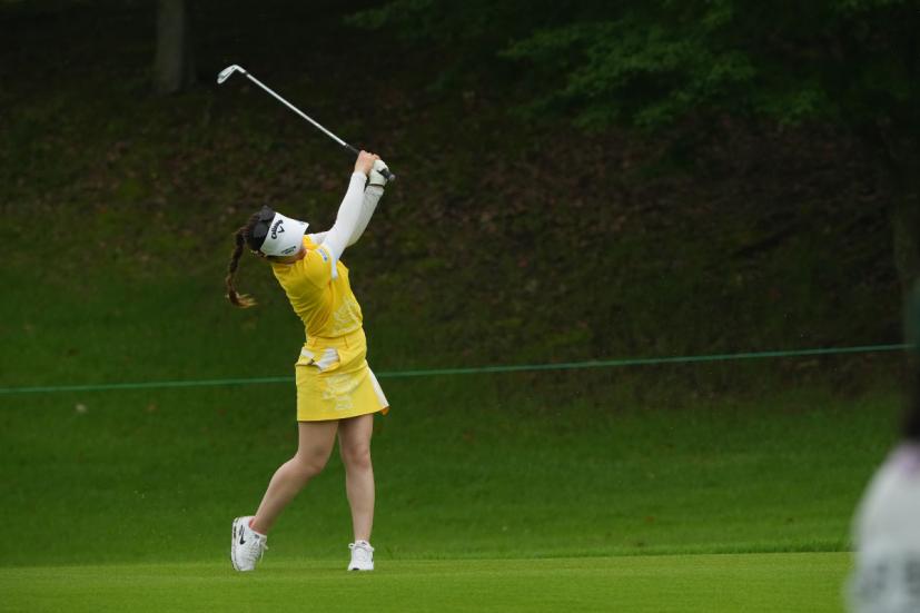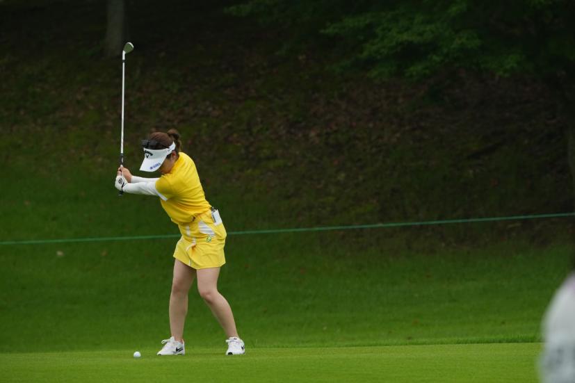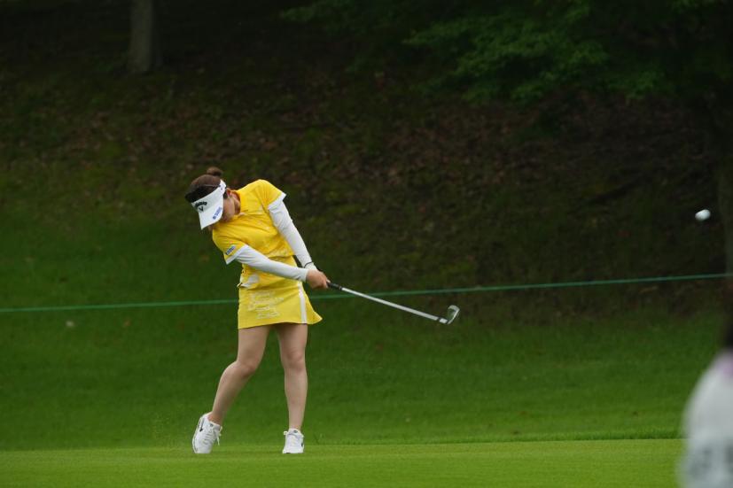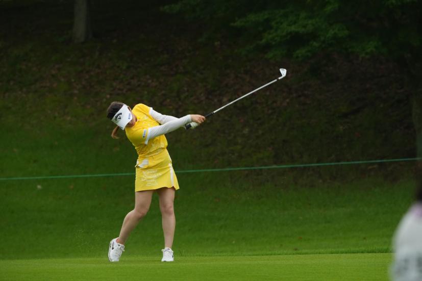 西村優菜のアイアンスイング(斜め前方)|フォロー①