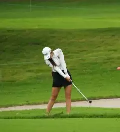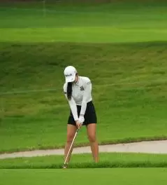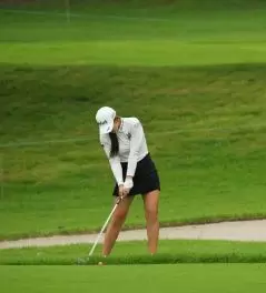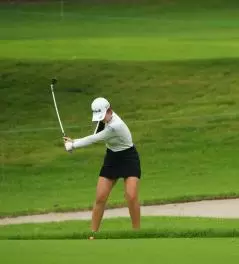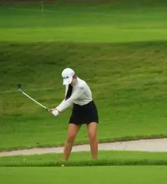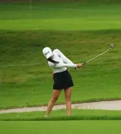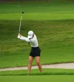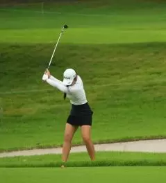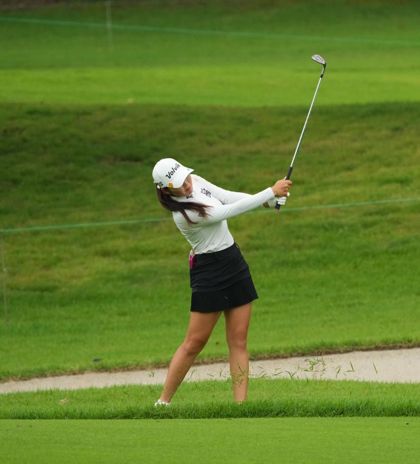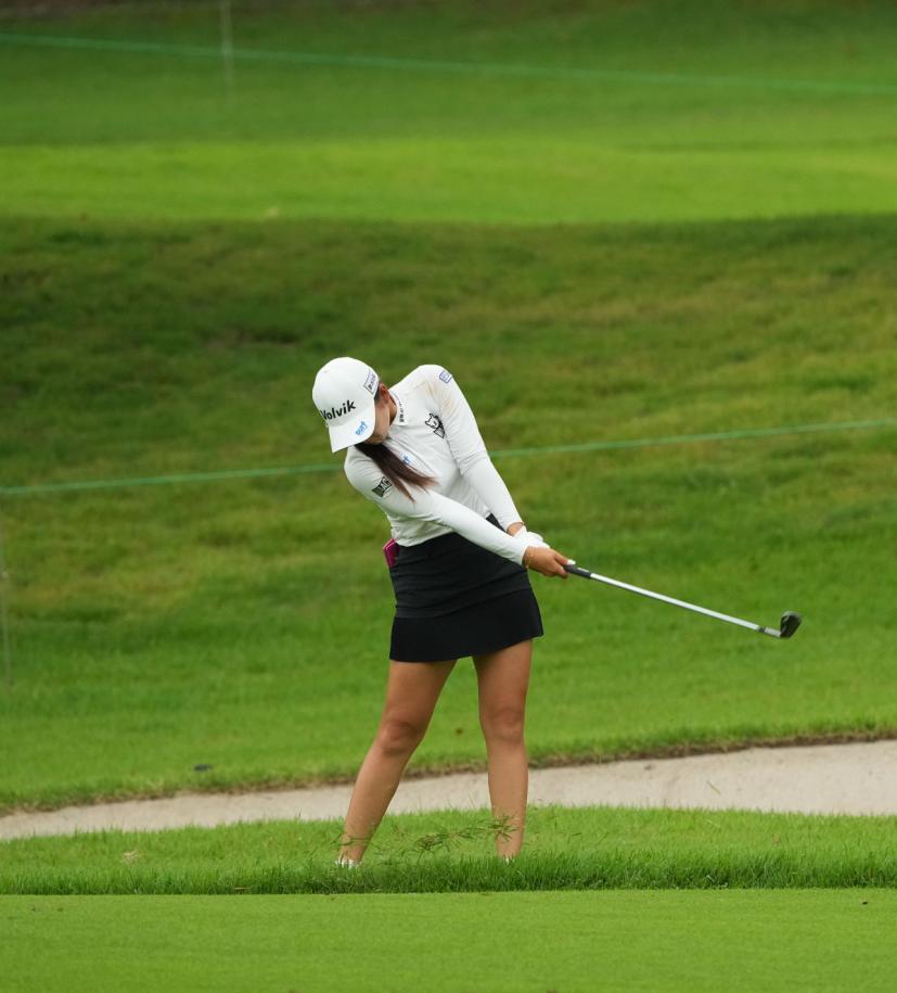 石井理緒のウェッジスイング(正面)|フィニッシュ