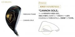 ハイブリッドには、低重心を維持したままフェース周辺のソール部をたわませることで反発力を向上し、飛距離アップを実現する「CANNON SOLE」を採用。