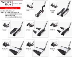 「WHITE HOT VERSAパター」には、5つのヘッドラインアップが用意されている。コンベンショナルなブレードでクランクホーゼルの「ONE」、幅広いブレードでダブルベントネックの「DOUBLE WIDE」、TOULON ATLANTAパターと同様のコンパクトなマレットタイプでショートスラントネックの「THREE T」、人気の高いツノ型で、VERSAアライメント用のバックフランジ形状を持つ「SEVEN」、そして、新登場の「TWELVE」だ。