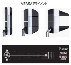 2013年に登場したVERSAアライメントは、ターゲットに対するラインに沿って配置されている一般的なアライメントとは異なり、フェース面と平行の位置に黒と白の帯をレイアウトしたスタイルとなっている。この白と黒のコントラストにより、他のアライメント以上にフェース面をターゲットに対して直角に合わせやすいところが最大の特徴だ。