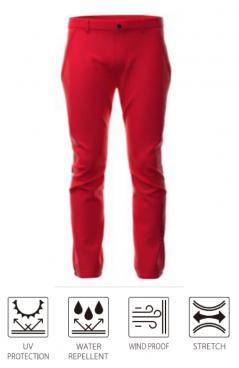 防水防風ストレッチ素材を採用し、身体を雨や風から防ぐ。ラップ型のデザインで、他のボトムの上から簡単に装着、脱着が可能。安心感のある長めの丈。