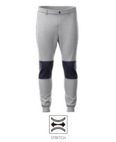上品なスウェット素材をベースに、膝部分とお尻部分には擦れにも強いストレッチナイロン素材で補強している。