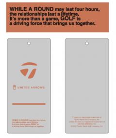 このメッセージは、一部製品の肩や袖部分にワンポイントとしてデザインに採用。テーラーメイドとユナイテッドアローズのロゴを並べた商品タグにも記載されている。