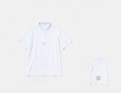 メッセージグラフィックを背面下部にプリント。さりげない洒落感のあるポロシャツ。