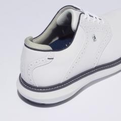 PGAツアーNo.1着用実績*を誇るフットジョイのDRYJOYS Premiereシリーズを中心に、クラシックゴルフシューズの代名詞であるフットジョイから、クラシカルなサドルデザインアッパーを搭載したパフォーマンスゴルフシューズ「FJ TRADITIONSスパイクレス」が23年2月に登場。伝統的で、ファッショナブルなサドルデザインは、クラシカルなゴルフシューズを得意とするフットジョイならではのデザインで、踵のテープ、レースホールの金具など、ハンドクラフト感あふれるアッパーと、こだわりのディテールが施されておりゴルフ場でも映える一足となっている。