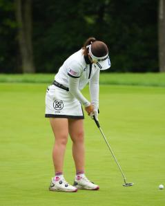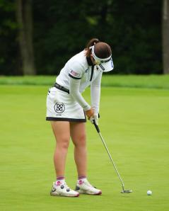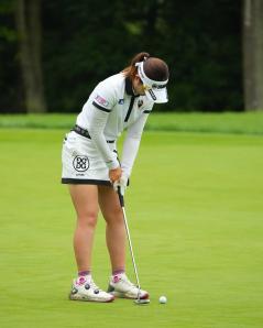 植竹希望のパッティングストローク(斜め後方)|フォロー①