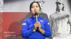 青木プロ。同ブランドとはウェア契約が3年目とのことで、まずは旗艦店オープンへの祝いの言葉を口にした。ウェアへの印象を聞かれると「柔らかな素材感で、基本コンセプトがスポーツとエレガンスとのことで、通常はデザイン性のあるものは、着心地がイマイチということも多いのですが、こちらのウェアはスポーツをするときでも、パフォーマンス発揮に支障がなく。テンションが上がる、選ぶのが楽しいウェアです」と話した。