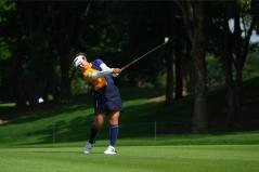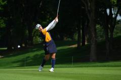 山下美夢有のアイアンスイング(斜め前方)|トップ