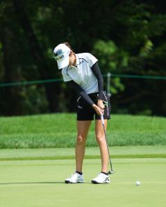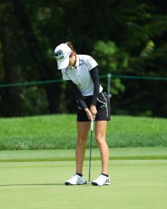 安田祐香のパッティングストローク(斜め前方)|フォロー①