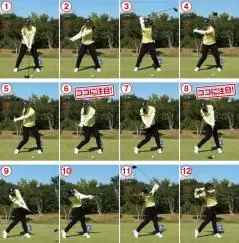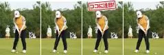 吉田選手のダウンスイングに注目してください。切り返しから下半身がリードしますが、上体をギリギリまで開かないでクラブを振り下ろしていることが分かるでしょう。